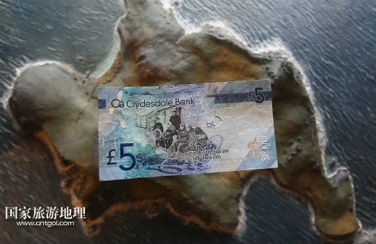 這是克萊茲代爾銀行發(fā)行的印有當(dāng)年圣基爾達島村民照片的5英鎊紙幣(7月18日攝)。