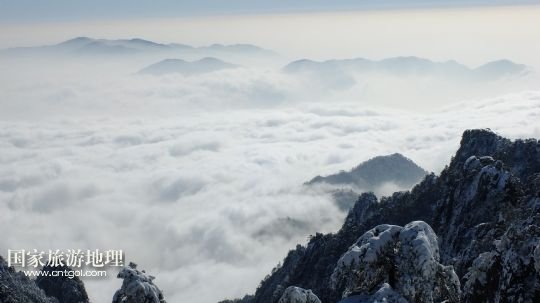 國(guó)家旅游地理 安徽黃山12月22日訊 這是12月20日在安徽黃山拍攝的云海景觀(guān)。當(dāng)日,雪后放晴的安徽黃山風(fēng)景區(qū)云海翻騰,美不勝收。 /新華社發(fā)(水從澤 攝)