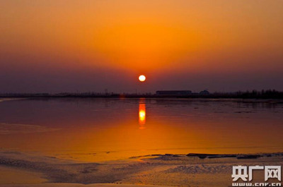 原標題:寒冬黃河寧夏黃沙古渡出現(xiàn)“落日繪流凌”美景
