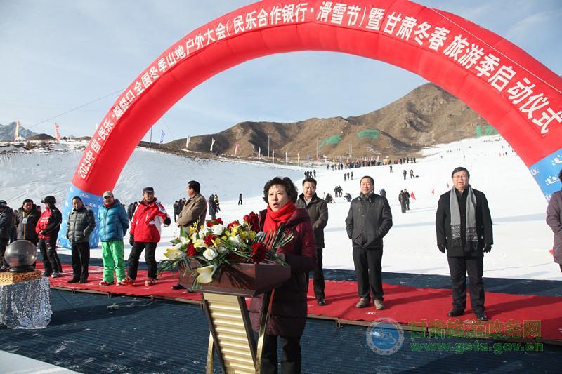何偉局長(zhǎng)用“祁連歡歌迎盛會(huì),冰雪旅游聚英豪”來(lái)稱贊本次活動(dòng)。她在致辭中指出,在張掖扁都口隆重舉行“中國(guó)·民樂(lè)扁都口全國(guó)冬季山地戶外大會(huì)暨甘肅省冬春旅游季活動(dòng)”啟動(dòng)儀式,這是我省體育、旅游兩個(gè)產(chǎn)業(yè)融合發(fā)展的重要舉措,也是我省淡季旅游市場(chǎng)啟動(dòng)的重要標(biāo)志。冰雪旅游是品位的追求,戶外運(yùn)動(dòng)是勇者的選擇。甘肅旅游資源十分豐富,冬季旅游資源獨(dú)具特色。為了給激情飛揚(yáng)的旅游愛(ài)好者獻(xiàn)上豐盛的冬季旅游盛宴,全省各地都在積極謀動(dòng)。特別是張掖市舉全市之力,精心策劃,全力推動(dòng),不僅在大景區(qū)建設(shè)等整體旅游工作上走在全省前列,而且在淡季旅游開(kāi)發(fā)上搞得紅紅火火,做出了示范。在張掖啟動(dòng)全省“冬春旅游季”活動(dòng),就是為了借張掖冬季旅游的火熱勢(shì)頭,帶動(dòng)全省淡季旅游持續(xù)升溫。希望全省旅游系統(tǒng)以本次活動(dòng)為契機(jī),整合資源,相互借勢(shì),形成合力,共同做熱、做大甘肅冬季旅游市場(chǎng),使甘肅豐富多彩的冬春旅游資源轉(zhuǎn)化為旅游發(fā)展新的亮點(diǎn)、經(jīng)濟(jì)增長(zhǎng)的新優(yōu)勢(shì)。