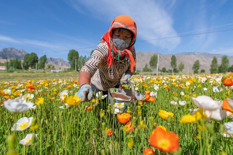 時值盛夏,地處祁連山北麓高海拔山區(qū)的甘肅省高臺縣新壩鎮(zhèn)紅沙河村種植的虞美人繽紛綻放,形成花海景觀。近年來,高臺縣新壩鎮(zhèn)將花卉蔬菜制種作為特色產(chǎn)業(yè)來抓,積極引導農(nóng)戶規(guī)?;?、集中化種植,成為當?shù)剞r(nóng)業(yè)增效、農(nóng)民增收的支柱產(chǎn)業(yè)之一。