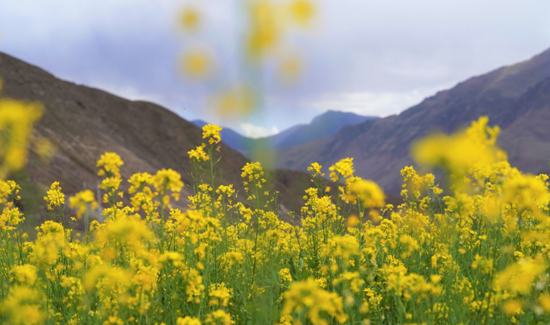 近日,西藏各地的油菜花盛開,呈現出生機勃勃的夏日美景。新華社記者 晉美多吉 攝