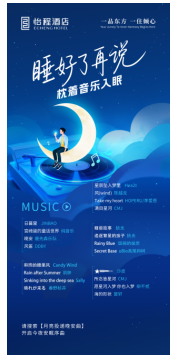 “感官助眠”板塊則聚焦體驗(yàn),通過聽覺與視覺的雙重引導(dǎo),構(gòu)建多維度的沉浸式睡眠場(chǎng)景。在聽覺層面,酒店歷時(shí)43小時(shí),淘汰33個(gè)歌單,從千余首曲目中反復(fù)篩選試聽,最終精心整理出“月亮投遞晚安曲”助眠歌單。其中涵蓋純音樂、自然白噪音、輕爵士等多種類型,為不同偏好的賓客提供個(gè)性化的“聽覺安眠藥”。與此同時(shí),怡程酒店亦在視覺與音效層面進(jìn)一步強(qiáng)化沉浸體驗(yàn),于自有媒體平臺(tái)發(fā)布了三條助眠ASMR視頻。視頻全程采用無旁白設(shè)計(jì),以極靜畫面與細(xì)膩環(huán)境音為核心,營(yíng)造出靜謐治愈的氛圍,如同為身心提供一場(chǎng)舒緩按摩,幫助賓客卸下日間疲憊,自然入眠。