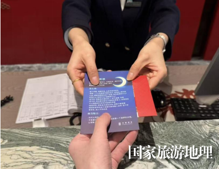 圖為前臺(tái)接待給賓客遞上冥想卡